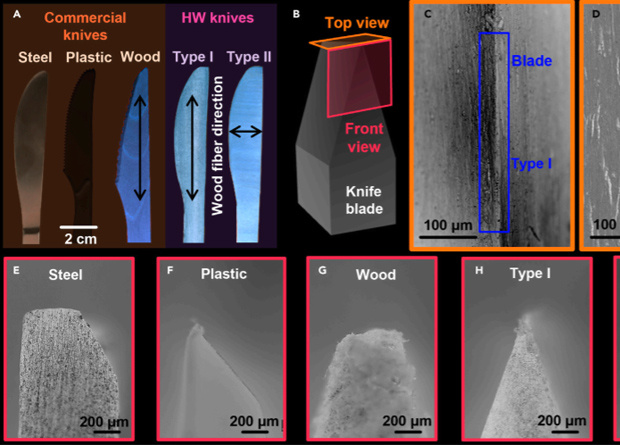 Американские материаловеды увеличили твердость древесины в двадцать три раза. Они обработали ее кипящим щелочным раствором, а затем сжали с помощью горячего пресса. Это позволило избавиться от мягкой фракции древесины (лигнина), заполнить пустоты и скрепить соседние целлюлозные волокна водородными связями. Нож из полученного материала не уступает стальным ножам, например, им можно с легкостью резать стейки. Результаты исследования опубликованы в журнале Matter.