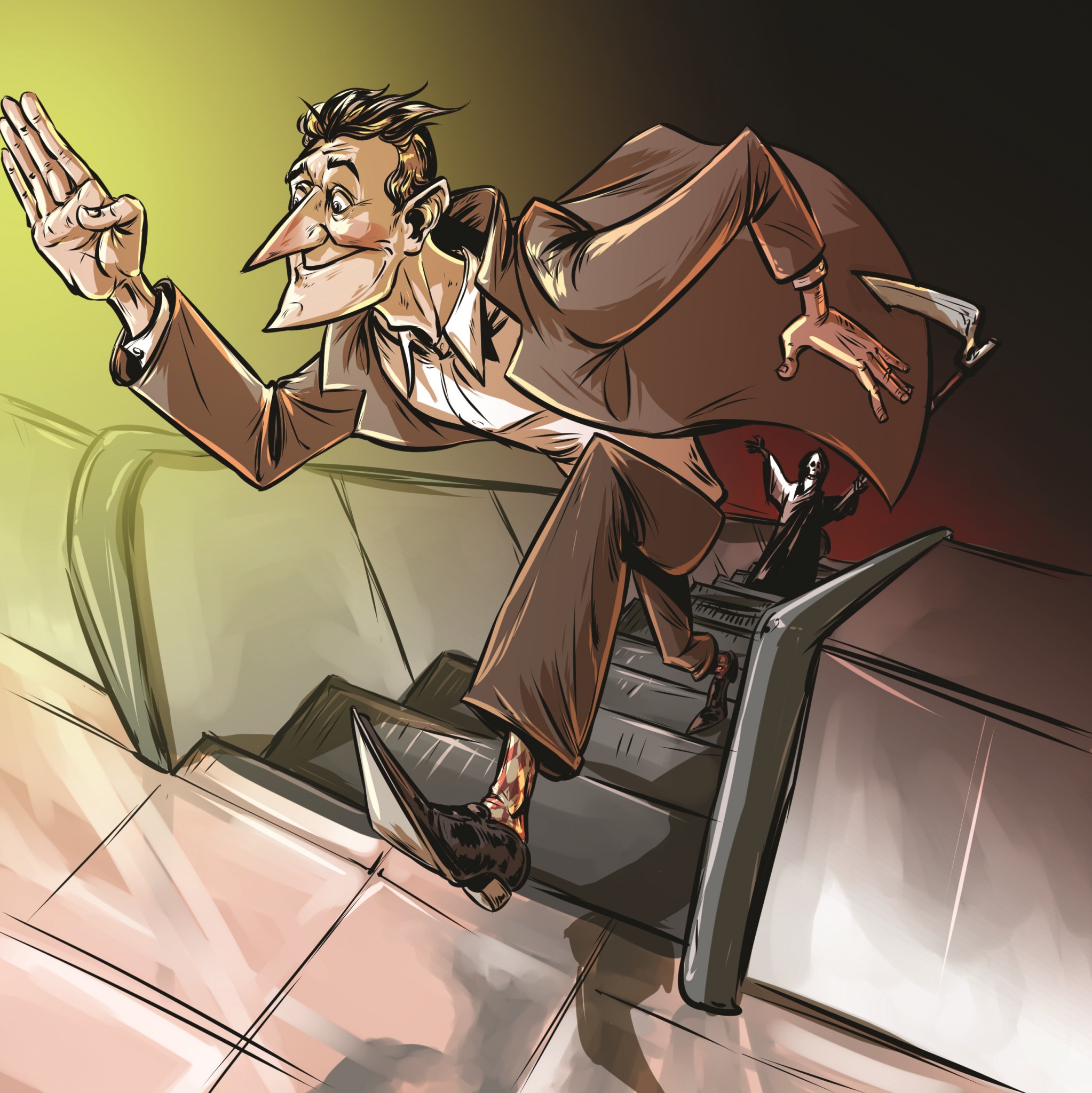 Недвижимого, бездыханного и абсолютно мертвого утром его нашли работники метрополитена. Герою достается почетное девятое место в списке дарвиновских номинантов, а нам с тобой – сакральное знание о том, что бывает с теми, кто не придерживает полы длинной одежды на эскалаторе.