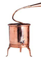 Готовые аппараты – либо дистилляторы, либо ректификационные колонны. Дистиллятор – это перегонный куб и охлаждающий змеевик. Проще говоря, кастрюля, где кипит брага, и изогнутая трубка, в которой охлаждается спиртовой пар, чтобы стечь в емкость. В дистилляторах сохраняется аромат исходного сырья, хотя остаются вредные примеси. Самый знаменитый – медный аламбик, в таких перегоняли еще эфирные масла в Древнем Риме.