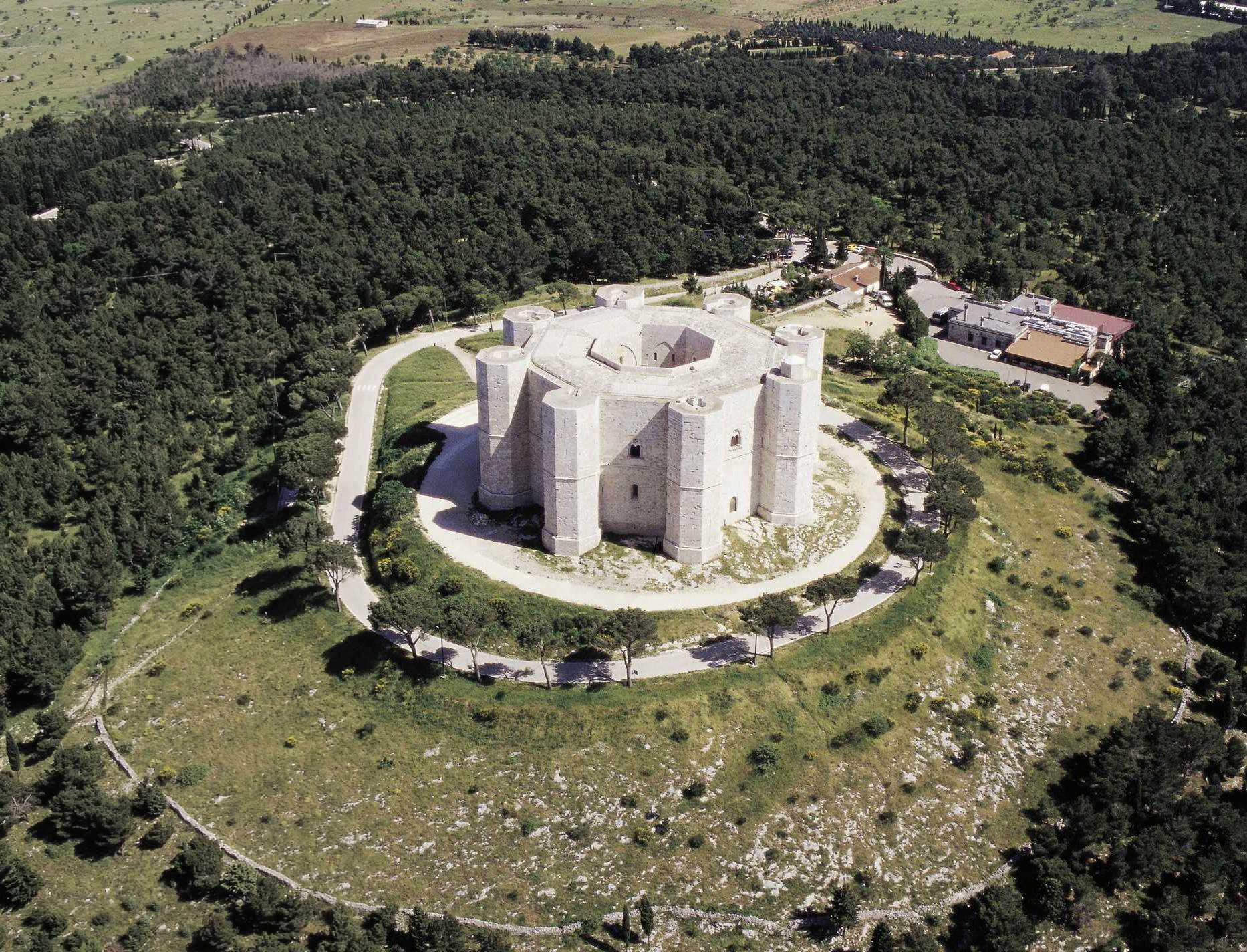 Патриоты обычно отвечают «Московский Кремль», ведь с точки зрения науки Кремль – обычный средневековый замок! Что же касается восьмиугольного Кастель-дель-Монте, то это как раз не самый обычный. Погляди внимательно на фото. Видишь? Вот то-то же! И мы сразу это заметили: рва с мостами нет, конюшен нет, да много чего нет, что обычно присутствует в обязательной архитектурной программе уважающего себя замка. Тем не менее это и в самом деле выдающееся сооружение, построенное в 1250 году, во времена