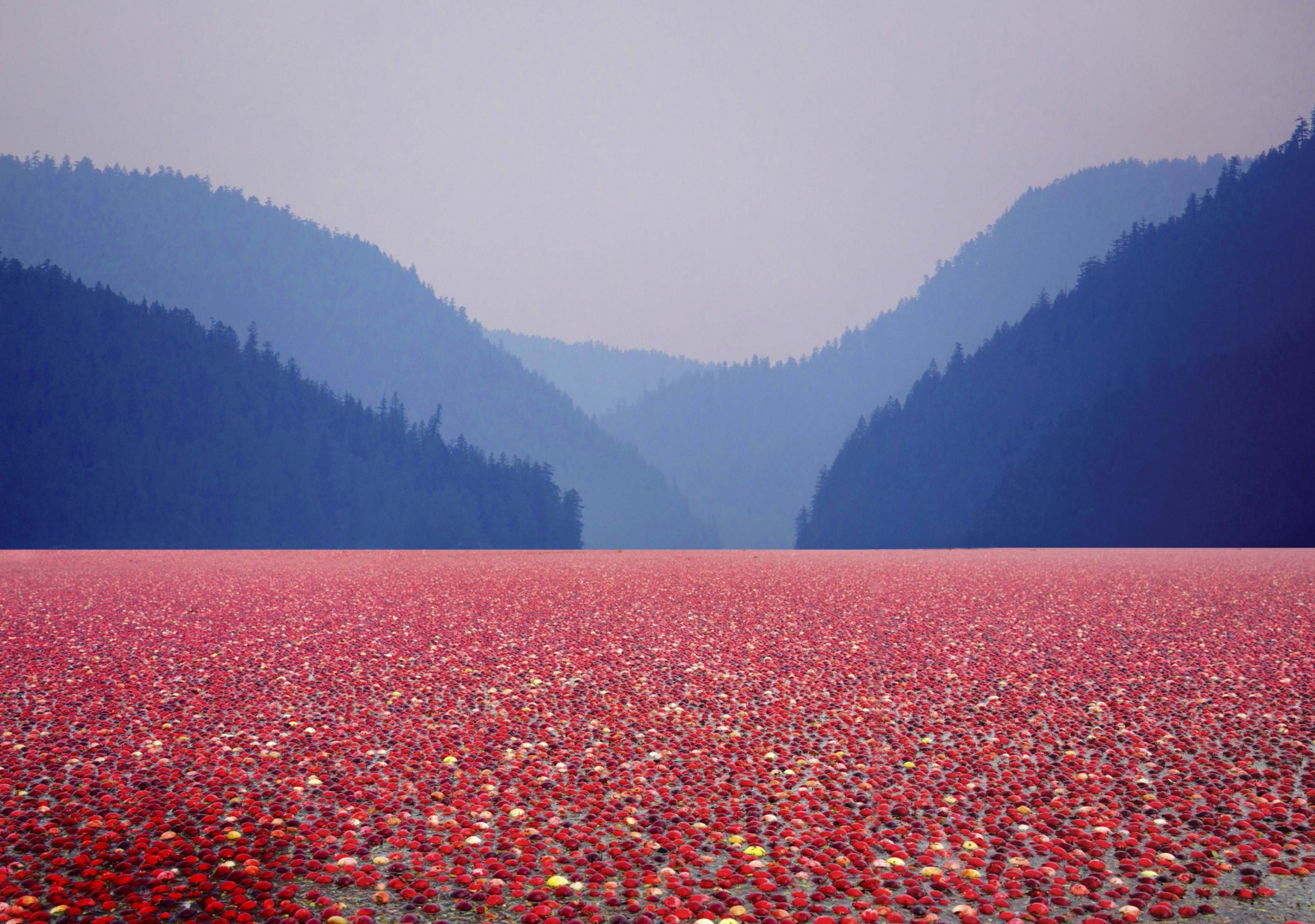 Северная Америка – родина клюквы. Но в Канаде все приличные граждане заняты выращиванием клюшек или добычей кленового сока, лишь те канадцы, которых обидел бог, сосланы на клюквенные плантации (мы себе это так представляем, сами там не были). Посевы клюквы возле Ванкувера начинают выглядеть сюрреалистично,