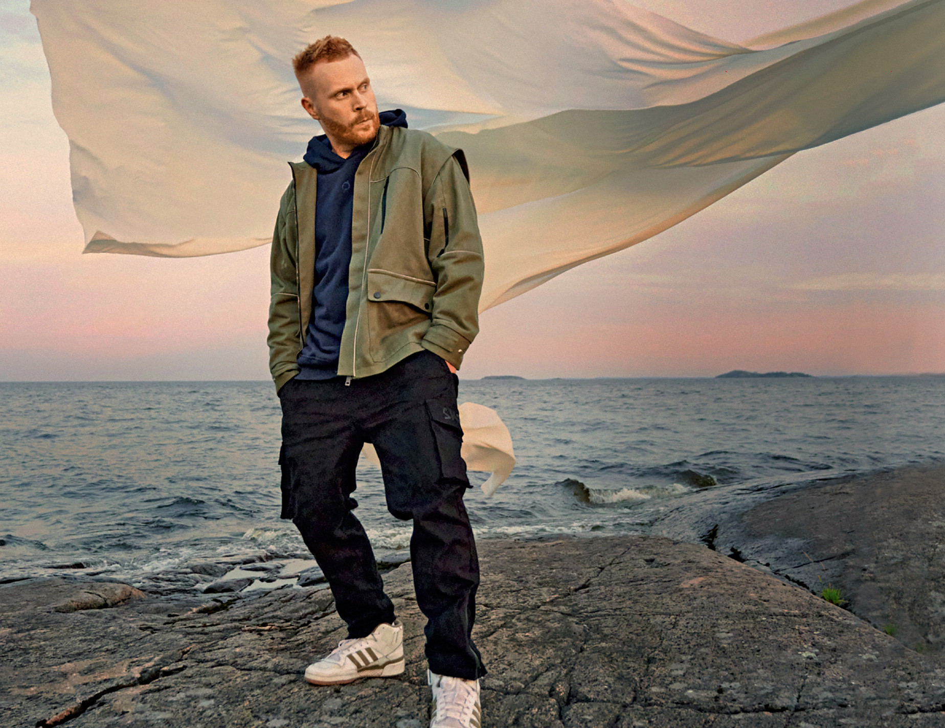 Мне любопытно наблюдать, как та или иная вещь влияет на человека. Например, мне не очень идет total black, поэтому учусь находить новые интересные комбинации. Недавно узнал про холодные и теплые оттенки. Мне советуют выбирать холодные. Самый стильный предмет мужского гардероба, на мой взгляд, — бомбер. Я фанатею по ним! Вместе с другом мы запустили бренд одежды SKØL — в коллекции, конечно, есть бомберы”.