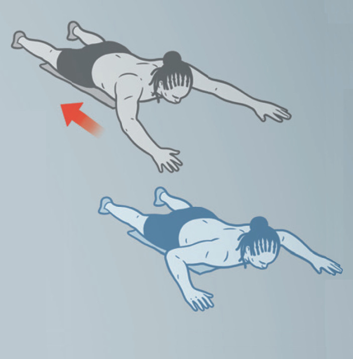 Лягте на пол лицом вниз, подложив под корпус полотенце. Вытяните руки вперед, положите их на пол и,не поднимая локти вверх, тяните себя до тех пор, пока ваш подбородок не поравняется с ладонями. Вернитесь в исходное положение и повторите.