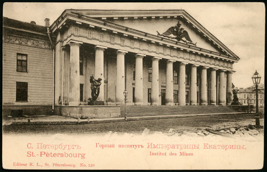 В 1773 году в Петербурге Екатерина учредила Горное училище. Оно не раз меняло название: было Горным кадетским корпусом, Институтом корпуса горных инженеров, Горным институтом, Горным университетом.