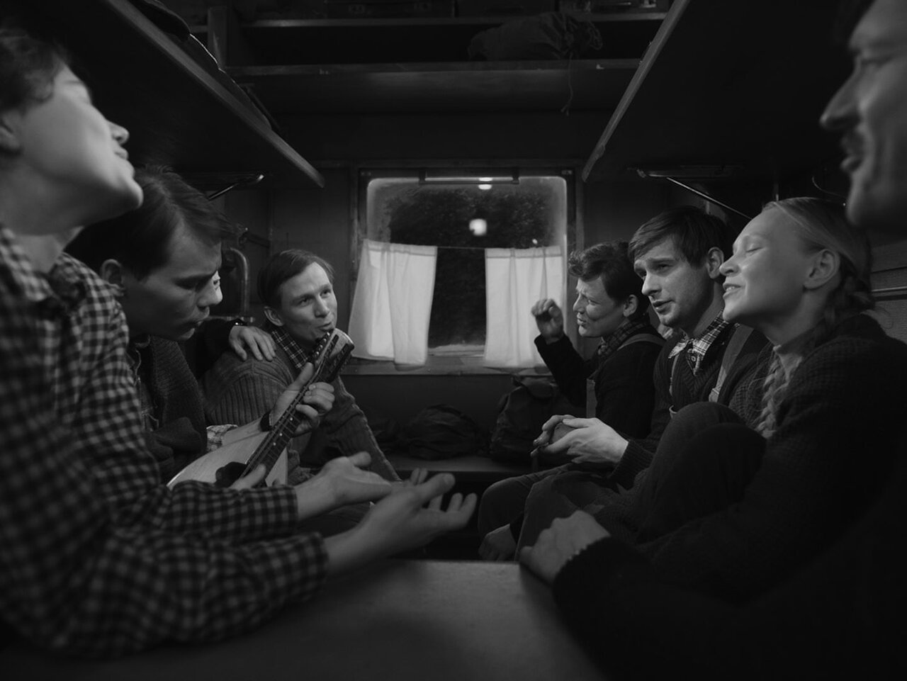 Вроде бы странный подход: чем одно советское прошлое так отличается от другого, чтобы снимать их в разных цветовых решениях, на разные камеры и с актерами из разных поколений? Да, если в цветной половине солирует гэбист Петр Федоров в нуарной шляпе (по меткому выражению режиссера Романа Каримова, головной убор явно рассчитывает как минимум на «Оскар») и его любовный интерес, патологоанатом Екатерина (Мария Лавыгина), то тургруппу Дятлова играют молодые и перспективные — от Ивана Мулина, звезды белорусского фильма «Хрусталь», до 19-летней Марии Мацель. За единственным исключением — Егор Бероев со времен «Турецкого гамбита» мелькал если только в фильме «Территория» (в немалой степени эту картину можно воспринимать как предвестника «Перевала Дятлова», там тоже было про суровую природу и амбициозных людей вдали от цивилизации). Здесь он в образе усатого туринструктора постарше, особиста, скрывающегося под чужим именем, присоединенного к группе на всякий случай, и случай этот, как мы все знаем, наступил.
