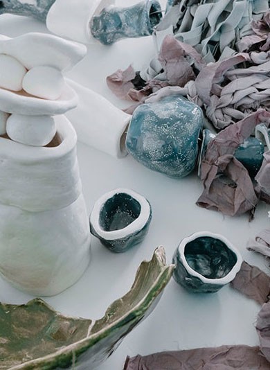 Есть и другой повод зайти в «Рихтер» на этих выходных: в саду открылась выставка «Мини-системы» Дишон Юлдаш. Художница, основатель и арт-директор галереи ISS Mag прячет свои чувственные керамические скульптуры в ветвях деревьев и расставляет на периферии уютного двора.