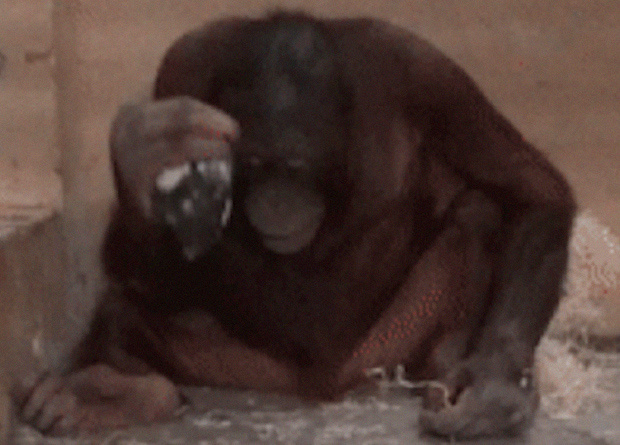 Биологи решили провести эксперимент над пятью орангутанами из двух зоопарков и выяснить, смогут ли эти человекообразные обезьяны самостоятельно изготовить и применить по назначению каменные орудия. Один молодой самец однажды взял в зубы изготовленный человеком отщеп, чтобы добраться до награды, а также один раз сам сделал три скола с нуклеуса, но не стал их использовать. Кроме того, одна из молодых самок начала повторять за людьми удары молотком по нуклеусу, но изготовить отщепы у нее не получилось. О результатах эксперимента сообщается в статье, опубликованной в журнале PLoS ONE.