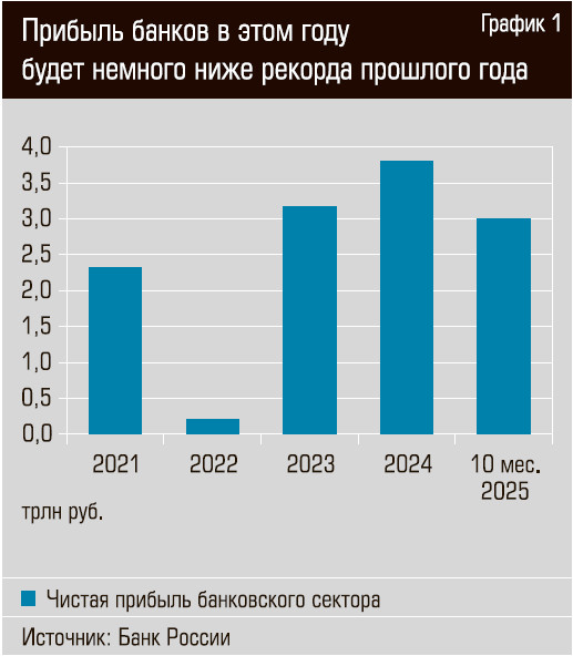 В 2025 году банки совершили настоящее финансовое чудо: на фоне замедления корпоративного кредитования и падения потребительского они смогли заработать почти столько же, сколько в рекордном 2024-м. Чистая прибыль банковского сектора за январь–октябрь текущего года составила примерно 3 трлн рублей, это лишь немногим меньше, чем 3,1 трлн за тот же период 2024-го. Согласно отчетности банков на сайте ЦБ, Сбербанк за 10 месяцев этого года заработал 1,42 трлн рублей (почти половину всей прибыли сектора), ВТБ — 265 млрд, Т-Банк — 67,6 млрд, Совкомбанк — 19 млрд.