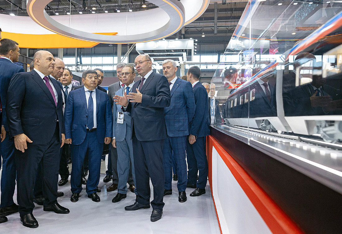 Михаил Мишустин ознакомился с проектом поезда для ВСМ на выставке «Иннопром-2024»
