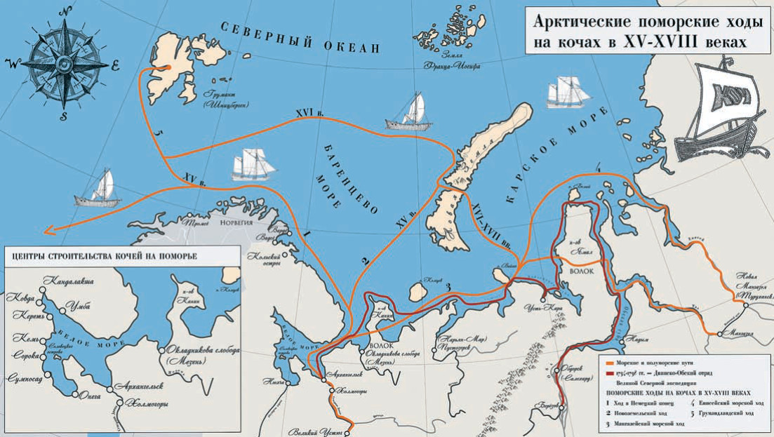 М. Г.: Тогда это вообще невозможно было реализовать, потому что к этому времени у нас был опыт арктического плавания только из Архангельска до Обской губа. Там ходили поморы-ушкуйники (так именовались участники военных походов, предпринимавшихся жителями Новгородской республики в XIV — начале XV века на гребных речных судах, которые назывались «ушкуй». — «Монокль»).
