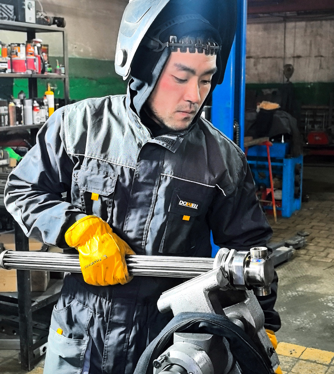 — Просто они сказали, что хотят сделать блендер у меня, по рекомендации обратились. Все компании, которые проводят процедуры гидроразрыва в пластах, знают друг друга, от руководителей до мастеров общаются между собой, делятся информацией. Некий нефтяной мир, где всем известно, у кого какое оборудование, где работают лучшие специалисты, какой сварщик круче. Так же и обо мне рассказали те, кто видел мою работу сварщика. Я согласился на заказ, потому что для меня это была возможность понять: справлюсь или нет с задачей? Конечно, времени было потрачено очень много, мы согласовывали с компанией каждый блок, смоделированный в 3D. Нам пригнали полуприцеп, голую раму, и на эту раму практически все, что касается металлоконструкций, мы сделали сами: поставили мотор внутреннего сгорания, каркас, подрамники, изготовили топливные баки, ящики, трубные линии, кабину оператора, баки для химии. Модернизировали установку химнасосов, смесительный чан для замеса. То есть заказчик предоставил нам двигатель, шнековый узел, но нужно было выполнить сварочные работы, улучшить его, сделать полный ремонт. Очень много всего нового внедрили. В том числе использовали собственные разработки, к примеру систему теплообмена и топливный бак объемом 1,3 кубометра, что важно для стабильной работы при низких температурах.