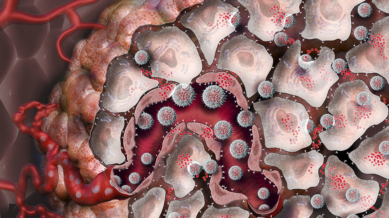 Опухолевые клетки, в свою очередь, часто захватывают контроль над подобными системами и таким образом тормозят работу всей системы. Чтобы преодолеть эту проблему, фармацевтические компании разработали целый ряд различных белковых антител, которые блокируют контроль над белками-регуляторами и позволяют иммунной системе делать свое дело. В тех случаях, когда множество Т-клеток располагаются в непосредственной близости от опухоли, или же там, где опухолевые клетки претерпели большое количество мутаций, создав таким образом еще больше мишеней для иммунных агентов, Т-клетки смогут отправить иммунной системе полноценный сигнал — а это может добавить годы к жизни даже тяжелобольного пациента.