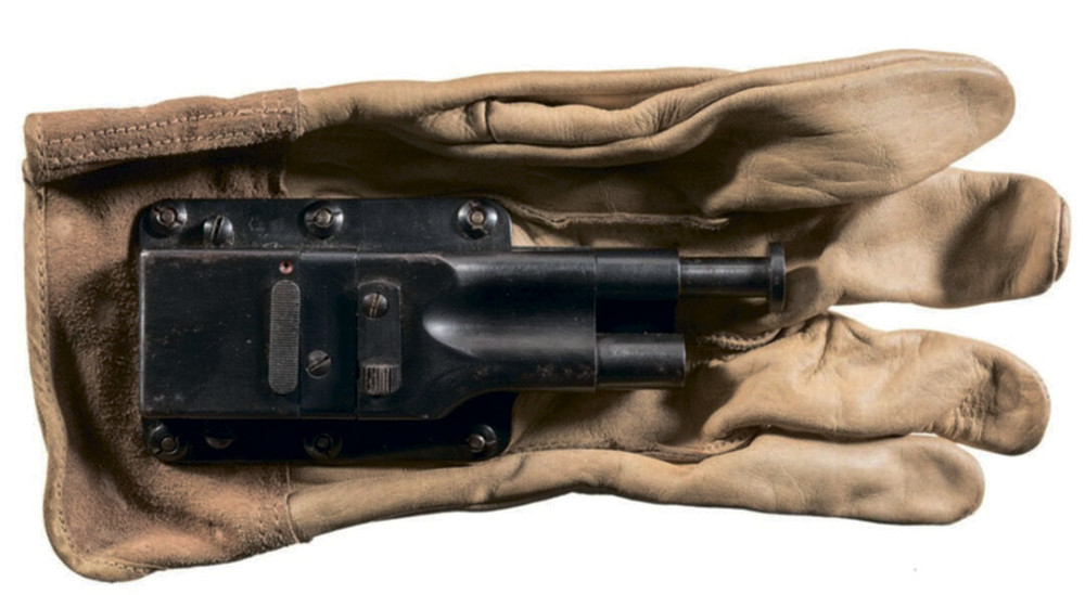Радиус действия пистолета-перчатки был ограничен длиной руки. Для устранения этого недостатка в конструкцию был введен тонкий трос, связанный с пальцами и спусковым рычагом. При резком сжатии пальцев трос дергал спусковой рычаг, и происходил выстрел. Вот только на практике все оказалось совсем не так, как в теории. Из оружия нормально можно было сделать только один выстрел, а на второй уже попросту не хватало времени, поскольку процесс заряжания оказался слишком уж долгим и сложным. Выпущено примерно 200 единиц такого оружия. Известен только один реальный случай использования этого устройства: военнослужащий Джон Блокер с его помощью отбил нападение японского солдата, вооруженного ножом.