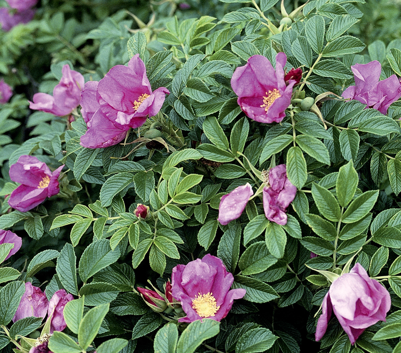 Мне среди агрессивных растений приходят на ум прежде всего кустарники. И самый известный из них и любимый многими садоводами — как раз шиповник, или парковая роза. Когда о нём заходит речь, все обычно акцентируют внимание на цветении и витаминных плодах. Но у шиповника есть ещё два свойства — он расползается с помощью корневищ и весьма колюч, что делает борьбу с ним нелёгкой работой. Компанию шиповнику составляют ягодники — облепиха, ежевика и малина, не говоря уже о некогда модном элеутерококке колючем. Они тоже активно разрастаются, а для ухода за ними всеми желательны кожаные перчатки.