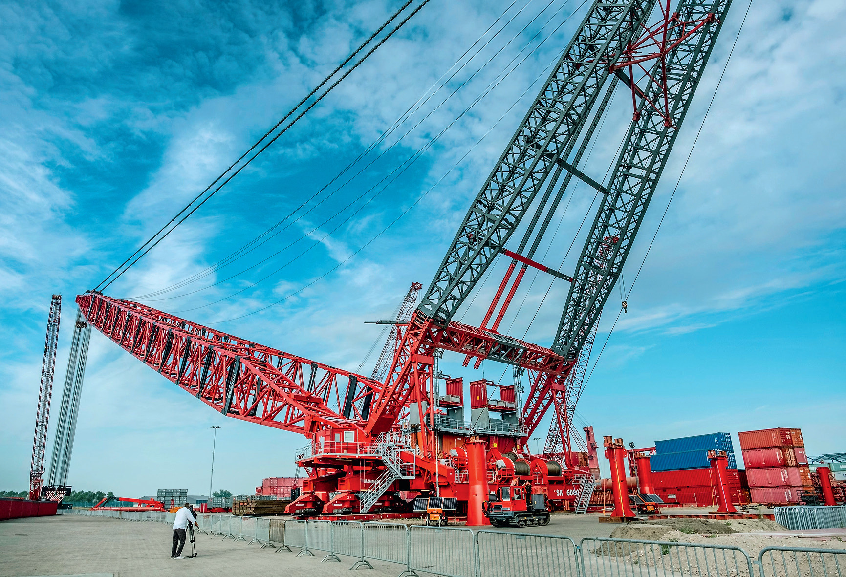 Он начал работать в порту города Вестдорпе (Нидерланды), на берегу Северного моря. Поворотный кран SK6000, способный поднимать грузы весом до 6000 тонн на высоту до 220 м, предназначен для установки вдали от берегов крупных ветроэлектрогенераторов, осуществляя погрузку их деталей на баржи, уходящие в море. Сборка крана из узлов и деталей заняла около трёх месяцев.