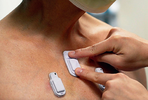 Предок современного стетоскопа, известного каждому, кто когда-либо подвергался врачебному осмотру, появился в 1816 году, и конструкция с тех пор претерпела множество изменений. Ещё одно изменение предлагают разработчики из США и Южной Кореи: это акустический датчик размером 40 на 20 мм, наклеиваемый прямо на кожу груди. Он имеет два микрофона: один прижат к груди пациента, другой направлен наружу и слышит окружающие звуки. Электроника вычитает внешние шумы, и в память стетоскопа записываются только внутренние, то есть звуки сердца и лёгких, без посторонних помех. Для более точной записи звуков на грудь наклеиваются три таких сенсора (см. фото). Это облегчает выслушивание груди в шумных местах, например, в палате интенсивной терапии, полной посторонних звуков от различной аппаратуры. Система Bluetooth, встроенная в датчик, позволяет выслушивать пациента на расстоянии в несколько десятков метров и вести круглосуточную запись. Новый прибор испытан на 55 пациентах, в том числе 20 с хроническими заболеваниями лёгких.