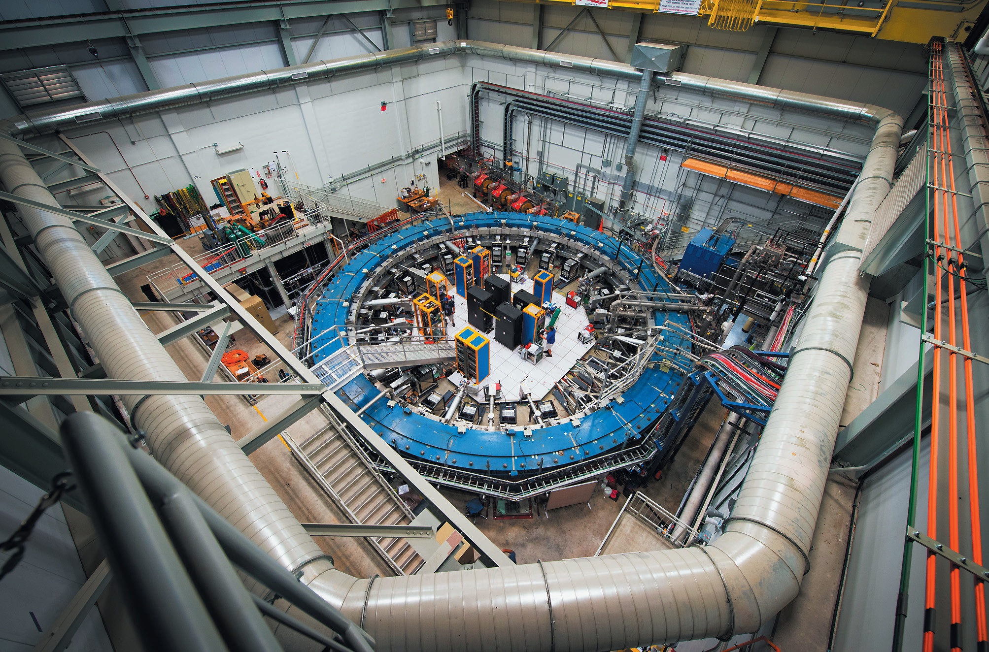 Чтобы проверить результаты, экспериментаторы в 2013 году перевезли оборудование через полстраны в Национальную ускорительную лабораторию Ферми (Fermilab, США), где можно получить более чистые пучки мюонов, и модернизировали установку. В новом эксперименте пучок мюонов движется по кольцу диаметром 15 метров, удерживаемый полем мощного магнита. Одновременно это магнитное поле заставляет магнитный момент мюонов (грубо говоря, направление «север-юг» магнита) прецессировать, поворачиваться, описывая конус, подобно оси волчка или юлы. Скорость прецессии зависит от магнитного момента частиц. Измерив её с очень большой точностью, исследователи вычисляют магнитный момент мюонов.