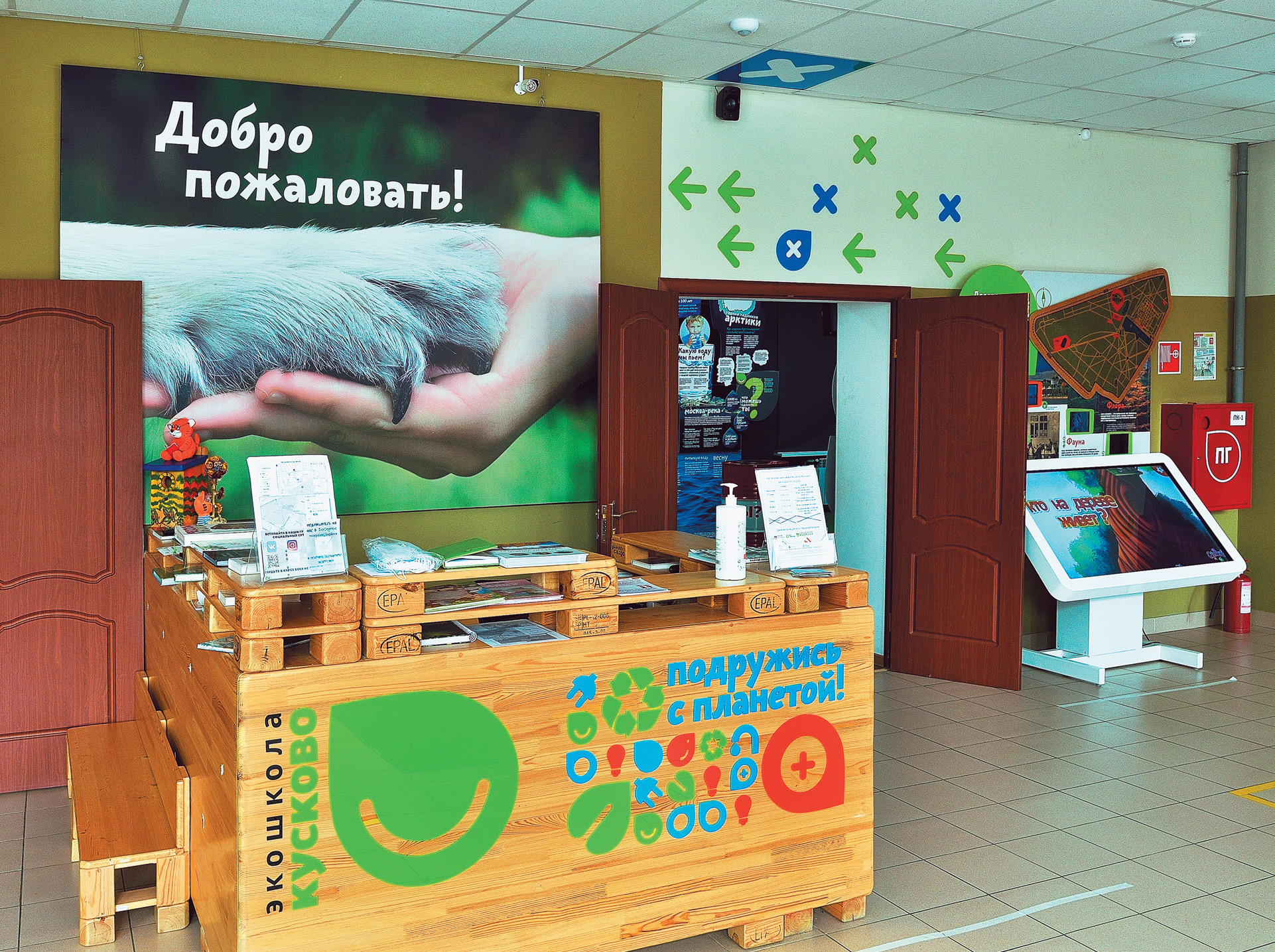 Эколого-просветительский центр «Экошкола Кусково» расположился в лесопарке неподалёку от усадьбы (давшей школе своё имя), заложенной графом Петром Борисовичем Шереметевым в XVIII веке. Основу древесных насаждений парка составляют берёзы, дубы, липы, есть и хвойные — ели и лиственницы. Многие травянистые растения, среди которых майский ландыш и колокольчик широколистный, занесены в Красную книгу Москвы. В парке обитают шестьдесят видов птиц и семь видов млекопитающих — встретить в Кусково можно не только вездесущих белок, но и осторожного зайца-русака, водяную полёвку и даже горностая… Подобная территория как нельзя лучше подходит для экошколы. Открылась она в Кусково по решению Департамента природопользования и охраны окружающей среды города Москвы весной 2015-го, спустя всего два года после представления проекта эколого-просветительского центра. Небольшое, построенное в начале ХХ века одноэтажное здание, в котором находится центр, когда-то и было школой, затем там размещались ткацкая фабрика, конюшня, оранжерея, фитнес-центр. К 2013 году здание оказалось в весьма запущенном состоянии, но это не напугало московских энтузиастов-экологов.