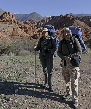 Указатель обнадёживает, что идти нам придётся всего два километра. На самом деле это по прямой, извилины тропы добавляют ещё километр. Минуем противоселевую плотину и следуем по почти высохшему руслу реки Кургантерек, радуясь розовато-белым соцветиям тянь-шаньской вишни и пышным зелёным пучкам дикого лука. Лишь слабый ручеёк струится по песчаному ложу. Сразу понимаем, что с водой может быть туго, — не зря запаслись!