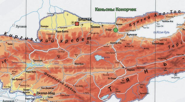 Путешествие на майские праздники в горы Тянь-Шаня было задумано мною и супругой давно. Хотелось увидеть и зелёные долины со стройными тянь-шаньскими елями, и иссиня-голубой простор Иссык-Куля, окаймлённого ослепительно-белоснежными горными пиками. Но при обсуждении маршрута с нашим проводником из Бишкека Дмитрием Усольцевым мы узнали, что там, где Киргизский хребет (до 1933 года — Александровский хребет) восточной оконечностью упирается в Боомское ущелье, сохранились уникальные геологические каньоны Конорчек. Решение было принято немедленно — едем туда!