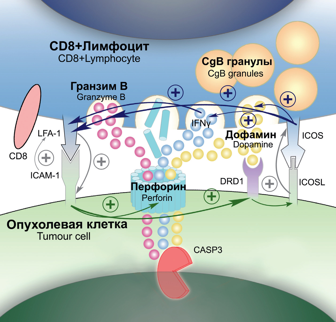 Контактные взаимодействия цитотоксического лимфоцита и опухолевой клетки