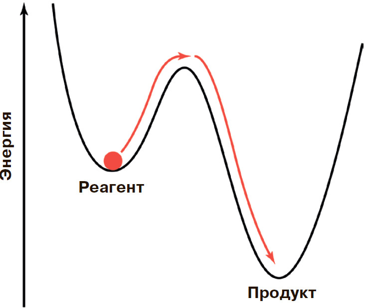Начать проще со второго вопроса. При химической реакции исходная молекула превращается в другую, в некотором смысле более стабильную (если говорить точнее, в ту, у которой ниже химический потенциал). Конечно, хотя молекулы различаются по своей устойчивости, любая из них, даже молекула очень высокореакционного соединения, в какой-то мере стабильна, иначе бы она вообще не существовала — атомы или, по крайней мере, какие-то группы атомов разлетелись бы, не образовав молекулы. Но почему-то часть таких молекул «выскакивает» из своего устойчивого состояния и «сваливается» в другое устойчивое состояние. Так брызги воды вылетают из стакана, перелетают через край и падают на пол. Причины, подбрасывающие некоторые капли воды до высоты края стакана, бывают разные: стакан может подрагивать, стоя на столике в поезде; брызги вызывает и струя воды или даже отдельные капли, упавшие в стакан с большой высоты. Точно так же и молекула способна подняться из своей «энергетической ямы», соответствующей её устойчивому состоянию, и потом «перевалить через край». Необходимый для этого избыток энергии она может получить от других молекул. Чем выше температура, тем больше энергия всех молекул, и нужный избыток проще получить — поэтому при повышении температуры химические реакции идут быстрее. Другой вариант: молекула поглощает свет и тем самым также приобретает избыточную энергию. Такие химические реакции называются фотохимическими.