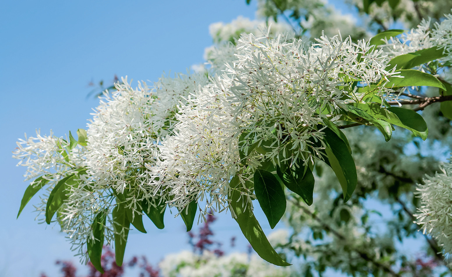 Молодые листья этих растений разворачиваются одновременно с кипенно-белыми соцветиями, и кроны выглядят словно засыпанные поздним снегом. Речь о снежноцветах, или хионантах, если пользоваться калькой с латинского названия. Они считаются красивейшими деревьями даже на родине, и с этим трудно не согласиться, видя, как они цветут.