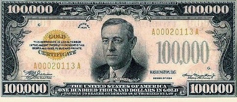Уже много лет, с 1945 года, самая крупная долларовая купюра имеет номинал в 100 долларов. А до этого печатались банкноты ценностью 500, 1000, 5000 и 10 тысяч долларов. Они и сейчас считаются легальным средством платежа, но, конечно, никто не несёт их в магазины, так как коллекционеры заплатят за такую, чудом сохранившуюся, бумажку значительно больше номинальной ценности. Самыми же крупными остаются купюры в 100 тысяч долларов, печатавшиеся в конце 1934 — начале 1935 года исключительно для нужд межбанковского обмена и не поступавшие в свободный оборот.