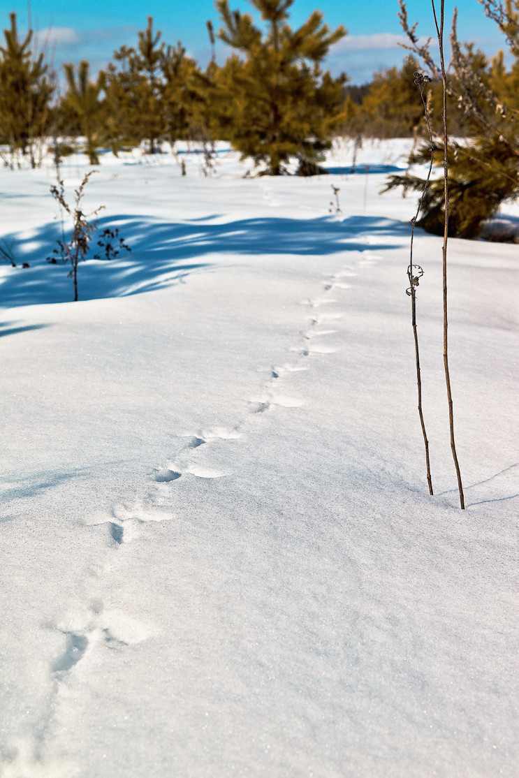 Наши дубравы с их сказочными полянами и березняки с торжественной белизной дарят возможность расшифровать замысловатые ребусы, начертанные на снеговом холсте. Со временем приходит опыт и понимание, кто именно оставляет эти следы, что при этом делает или куда направляется. Оказываясь в лесах разных регионов нашей страны, я вижу, что структура их, как правило, однотипная в плане обитания животных. Лес — это их дом, в котором, как у всякого жилища, есть спальни, коридоры для переходов, столовые, то есть кормовые площадки, и прочие обжитые места.