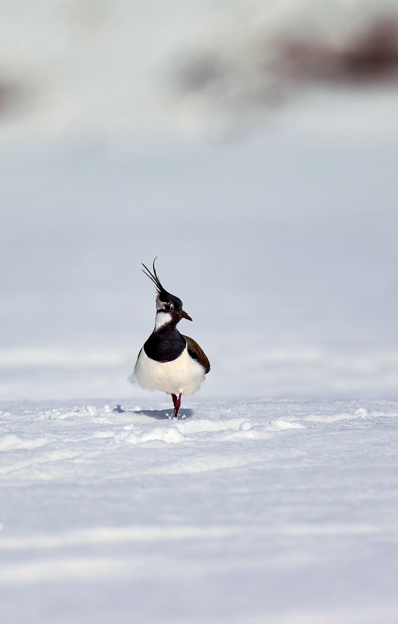 Ровный горизонт снежной целины как будто бы не предвещает ничего весеннего, однако по утреннему насту уже бегают неугомонные создания. Это самцы чибисов. Мои инопланетяне! Разглядывая в бинокль крупный план птицы, объясняю себе возникновение ассоциации: на фоне белого «листа» снега контрастный профиль чибиса с необычно крупной головой венчает фантастический перьевой хохол, похожий на пучок разнодиапазонных антенн на гермошлеме «пришельца», причём «пришелец» очень умело управляет своими «антеннами» — то расправляет их, то прижимает к спине, явно ведя поиск источника радиосигнала «оттуда».