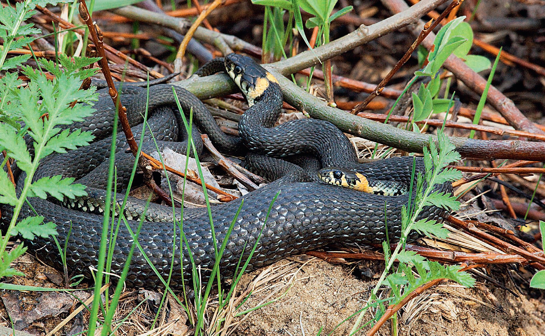 Дело было этой весной, в начале мая. Я охотился с фотоаппаратом в родных краях — в окрестностях деревни Денисово в Рязанской области — и часто ходил к реке. В первый же день наткнулся на берегу на пару ужей, сплетённых в клубок под кустиком ивы. Моё чрезмерное любопытство им не понравилось, и, немного пошипев, одна змея поползла в воду. Через некоторое время за ней последовала и другая, абсолютно точно копируя маршрут первой и на суше, и на воде. Что заставило её не отступать от сородича ни на сантиметр ни влево, ни вправо? Возможно, первой уползла самка, а за ней — самец, ориентируясь на запах, а может, ужи просто пользуются проложенной сетью троп, которые есть у большинства животных…