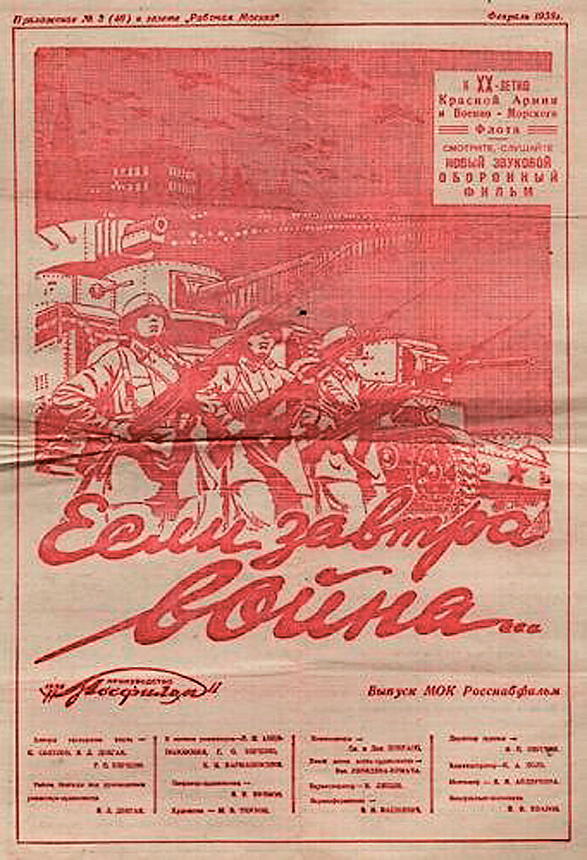 В СССР тоже не было иллюзий на этот счёт, и советская пропаганда начала подогревать соответствующие настроения, что способствовало появлению военной фантастики. Ожидаемо она была посвящена изобретениям необычного оружия, которое даст подавляющее преимущество на поле боя, или быстрой победе, достигнутой за счёт мастерства армии и поддержки прогрессивного пролетариата во всём мире.