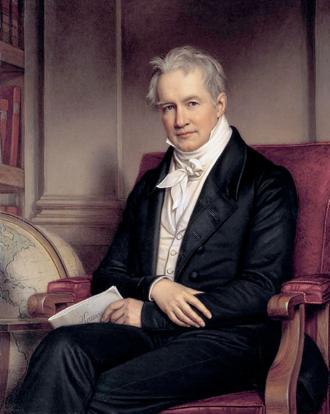 Помимо прочего, фон Гумбольдт ввёл понятие «сферы интеллекта» (или «сферы разума») — того, что мы сегодня понимаем под ноосферой (высшей стадией развития биосферы, связанной с расширяющимся воздействием человека на природу). И высказывал уверенность: «Создание новых органов, орудий наблюдения, умножает духовное, а вместе с этим часто и физическое могущество человека... Придёт время, и те силы, тихая работа которых и в стихийной природе, и в нежных клеточках органической ткани теперь ещё неуловима для наших чувств, будут дознаны, введены в употребление и, пробуждённые к высшей деятельности, займут место в необозримом ряду тех средств, которые приближают человека к владычеству над отдельными областями природы и к более живому разумению целостного мира».