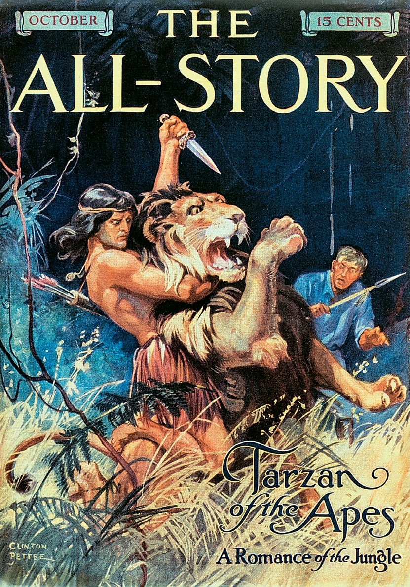 Обложка журнала «All-Story Magazine» с иллюстрацией Клинтона Петти к роману Эдгара Берроуза «Тарзан, приёмыш обезьян». 1912 год. Источник: commons.wikimedia.org