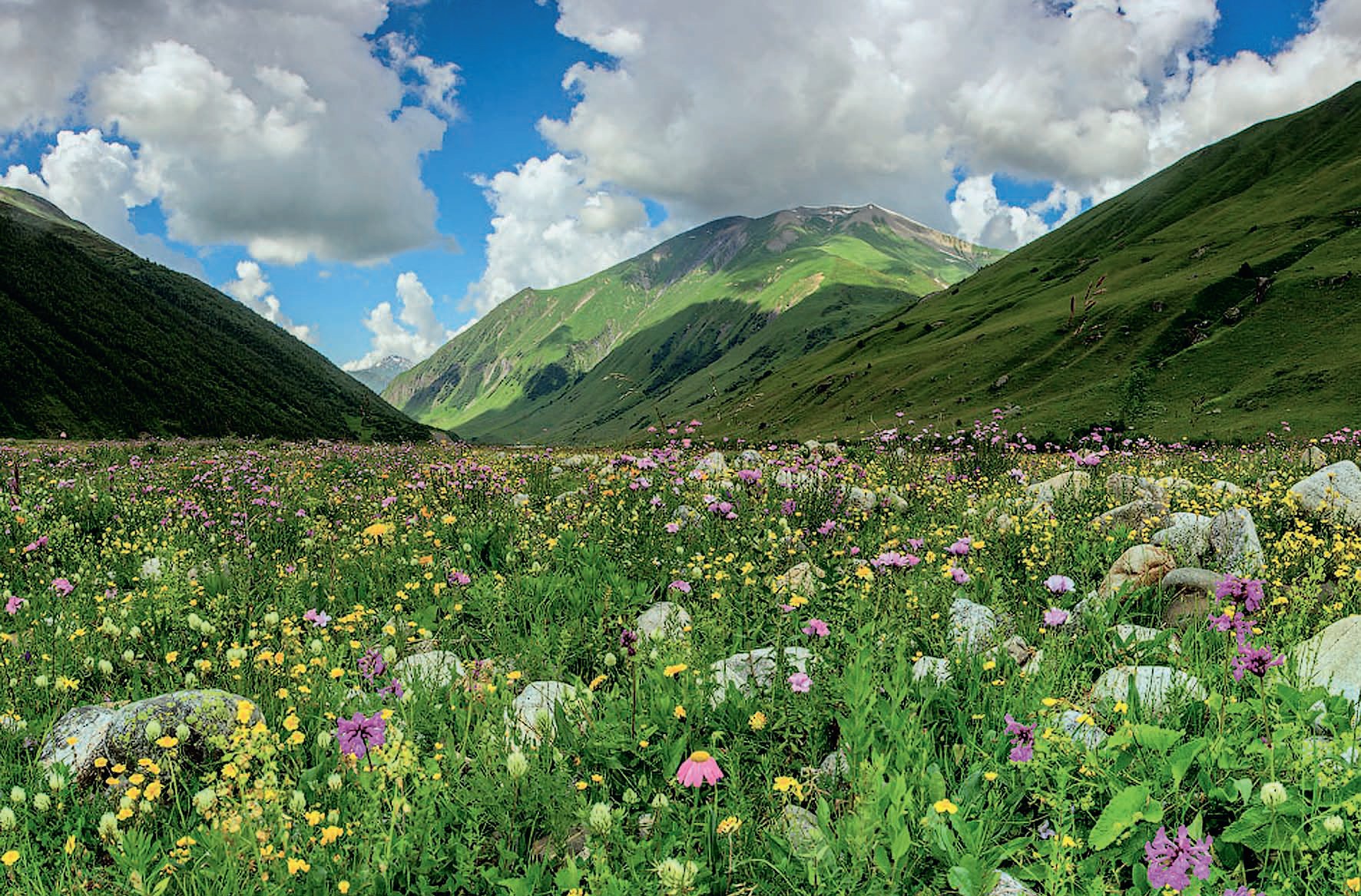 Поднявшись выше километровой отметки, Альбов очутился совсем в ином мире: лианы исчезли, плющ перестал душить дубы и скромно вился вокруг стволов. На смену цветущим экзотам пришли гигантские пихты и ели. Поляны поросли буйной растительностью, да такой высокой, что в ней не видно было сидящего на лошади всадника. Вокруг цвели двухметровые колокольчики и зонтичные растения с соцветиями больше тарелки.