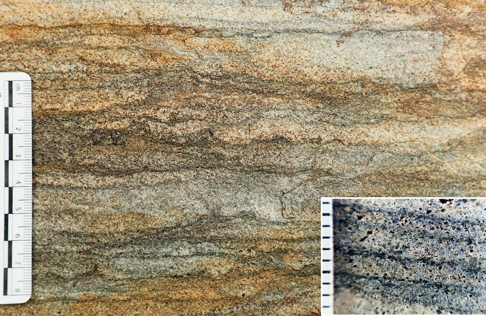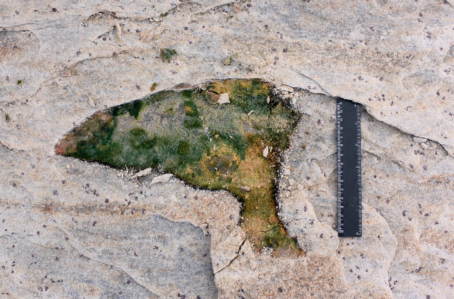 Среди отложений группы Мудиз были также распознаны почвы периодически засушливых обстановок (то есть условий. — Прим. ред.). Благодаря процессам внутрипочвенного преобразования минеральной массы в сочетании с сезонным колебанием уровня грунтовых вод и интенсивным испарением в них формировались гипсовые и карбонатные округлые образования, так называемые конкреции.