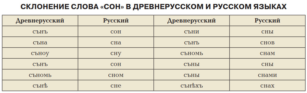 Слова, которые мы рассматривали в начале статьи, взяты как примеры и потому, что они довольно старые. Это позволяет нам проследить их историю. В древнерусском языке, который стал предком современного русского, украинского и белорусского языков, слова «слон» и «сон» выглядели иначе: «слонъ» и «сънъ». Разница в написании очевидна. Посмотрим, как раньше писали и другие наши слова-примеры: «дьнь», «лъбъ», «ръжь», «коупьць», «пьсъ»…
