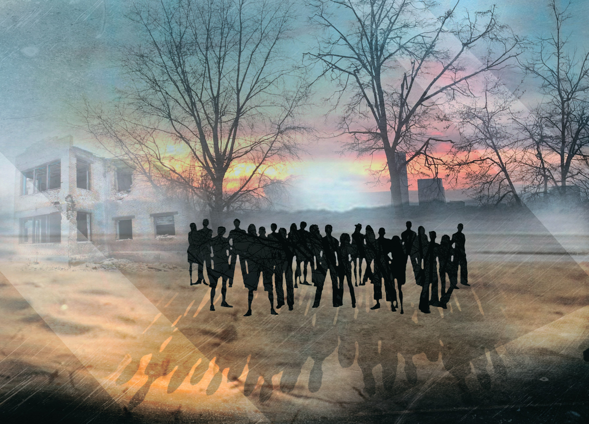 Мне это кажется нереальным. Тысяча дождей — это ведь целая вечность. Нам бы как-нибудь дождаться хоть одного спасительного дождя, пережить то время, из которого вечность и образуется. Таким же призрачным кажется мне и Новый Лес, надвигающийся на нас с каждым шагом. Причём чем ближе мы подходим к нему, тем менее реальным он представляется. Ноги уже по щиколотку утопают в наметённой пыли, воздух становится глуше, суше, плотнее, серые фантастические сугробы поднимаются аж до нижних ветвей, и на них комковатыми напластованиями лежит та же пыль, осыпающаяся при каждом неосторожном прикосновении. Впору надевать пылевые маски. С чего я решил, что Новый Лес ещё жив: и кустарники, и деревья выглядят как заброшенные театральные декорации. Никаких проблесков зелени. Вероятно, зрение меня всё же обманывало. Небольшое круглое озерцо, где ещё месяц назад стояла тинистая, болотная, однако вода, теперь превратилось в яму, заполненную той же унылой пылью. А под ней, если что-то и выжило, то лишь мутные бактериальные плёночки.