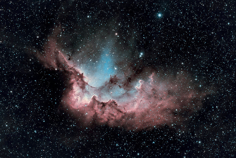 Созвездие Цефея находится чуть в стороне от полосы Млечного Пути, захватывающей меньшую его часть, и содержит несколько интересных звёздных скоплений и туманностей.