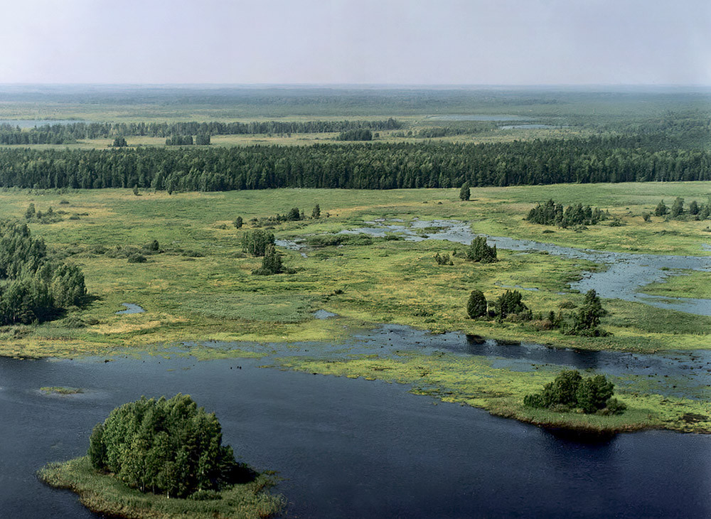 — Раньше, до образования водохранилища и создания заповедника, здесь очень редко, отдельными парами, гнездилась скопа. Все эти озёра стояли среди болот. Почему болот — потому что полуостров наш пологий, низменный, и в то же время — водораздельный, он между двумя реками: Мологой и Шексной. Такие низменные водоразделы в зоне избыточного увлажнения, в которой мы живём, склонны к заболачиванию: дренаж поверхности у них слабый, сток вод затруднён, в микропонижениях поселяются сфагновые мхи, которые, разрастаясь, образуют болотный купол, и в конце концов весь наш полуостров покрылся верховыми сфагновыми болотами. Они шли по всему водоразделу — от того места, где мы находимся, и прямо до Рыбинска проходила полоса верховых болот. И, естественно, среди этих болот были остаточные озёра.