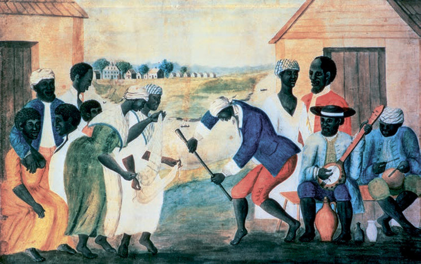 В Америке вывезенные из Африки рабы делали банджо из тыкв, на которые натягивали шкуры животных. Гриф был деревянным, струны изготавливали из кишок или растительных волокон. Письменные упоминания о банджо в Северной Америке и бассейне Карибского моря датированы XVII-XVIII веками. Долгое время инструмент пользовался популярностью только среди рабов и в сельской народной культуре, пока его не прославили знаменитые шоу менестрелей — популярные в середине XIX века выступления белых артистов с «африканским» гримом, которые представляли комические сценки из жизни темнокожих, исполняли характерные для них музыку и танцы.