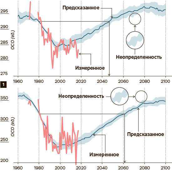 Согласно модельным оценкам, ожидается, что среднеглобальный озоновый слой вернется к уровням «додырочного» 1980 года во второй половине 2040-х, а антарктический — примерно к 2061 году. Такая разница обусловлена уникальностью присущих Антарктиде климатических условий, вследствие чего она «ушла далеко вперед планеты всей» по масштабности весенних потерь озона. Для сравнения: на другом полюсе Земли, в Арктике, «озоновые дыры» (также весенние) случаются не ежегодно, а примерно раз в десять лет, и их параметры многократно скромнее антарктических.