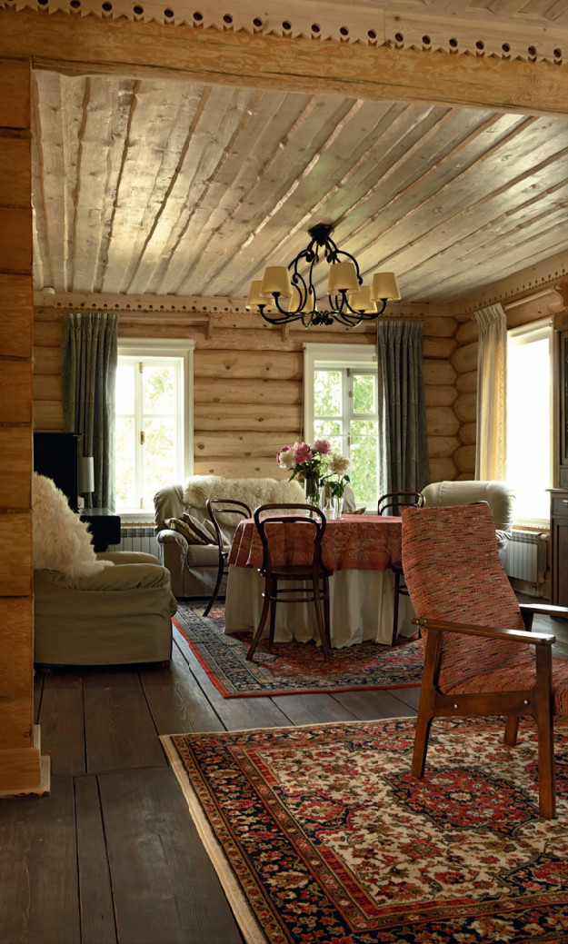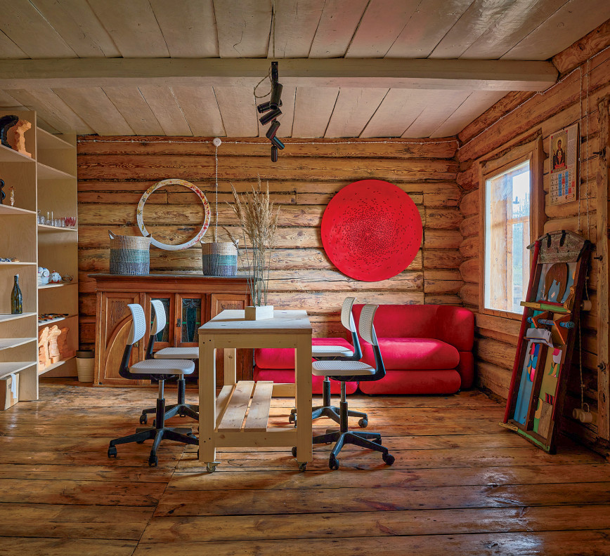 Изобрести машину времени и вернуться в детство. Вспомнить, как катались на картонках с ледяной горки, а потом отогревали дома замёрзшие руки. Забраться на диван с книжкой и нырнуть в мир приключений. Долго сидеть за столом и гонять чаи, пока кто-то перебирает струны на гитаре. А может быть, согласиться на долгую лыжную прогулку и понять, что уроки физкультуры в школе не насовсем отбили желание катить по лыжне и сбивать палками снег с веток. «Изба де Шарм» — проект архитектора Ильи Сологубовского. В 2016-м он купил в деревне Выголово, в десяти минутах езды от плёсской набережной, старый домик в четыре окна — так началась история его архитектурной фантазии на тему русской избы.