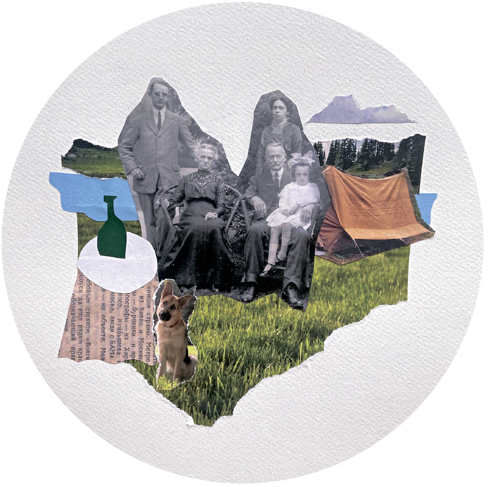 Главным героем может быть человек или животное, птица, а может быть вообще что-то абстрактное – круг, например, вокруг которого вы будете собирать среду. У нашего коллажа сценарий такой: главный герой – семья – отправляется на природу, на пикник. Мы поместим их в центр композиции и будем следить за тем, чтобы они оставались самым крупным и заметным элементом коллажа. Всё остальное будет только помогать.