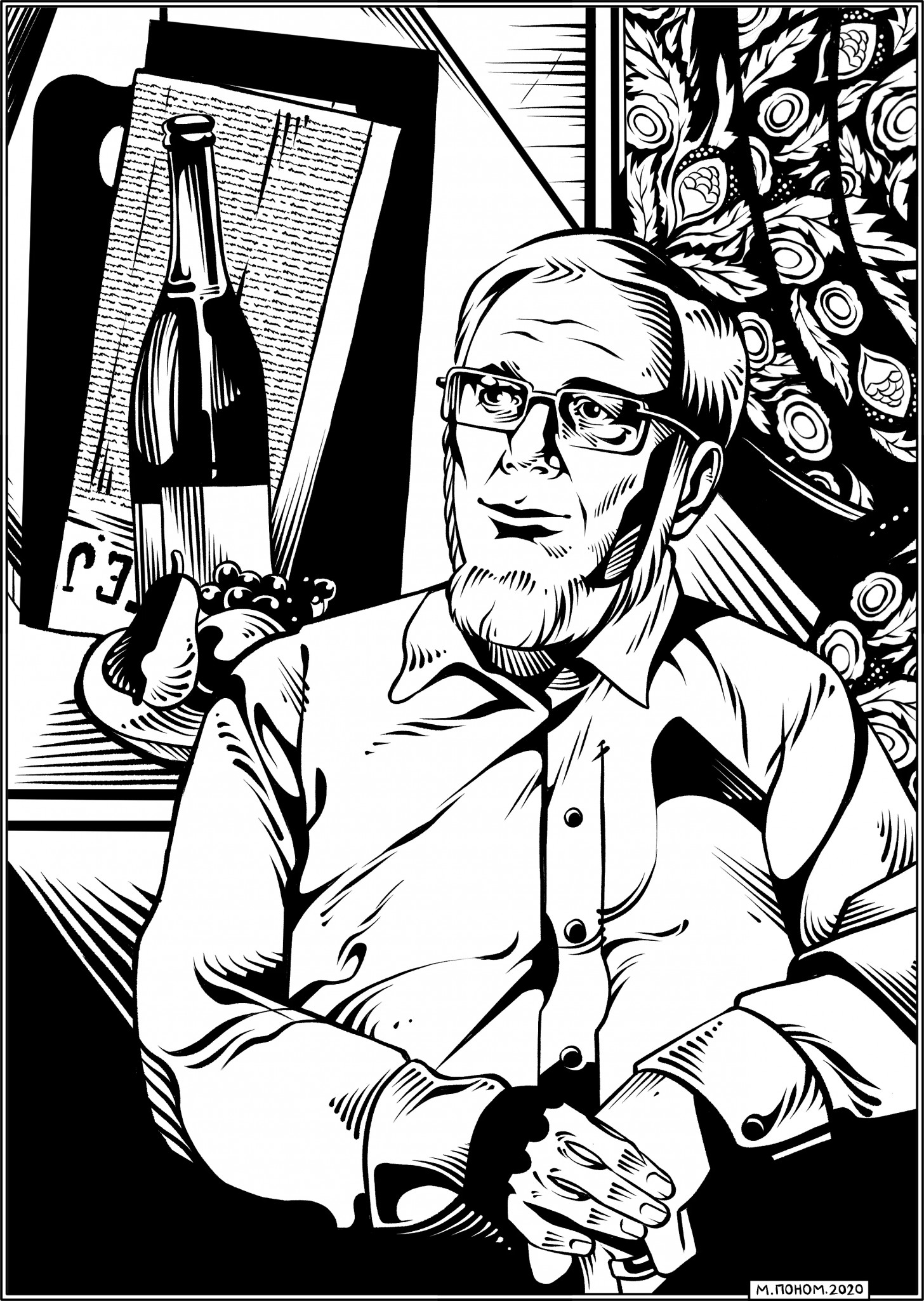 Когда Феликс, сын Чудновского, выходил из квартиры и сдавал на охрану, его втолкнули обратно якобы четыре кавказца, уложили на диван и требовали: «Шагал где?» Не сказал он. Шагал ушагал. 21 работу украли, в том числе «Синий графин» Альтмана. Поскольку вещи были дорогие, значимые, Чудновский обратился к Абрамяну, который лечил Щёлокова и Брежнева. Тогда Абрамян обратился непосредственно к Щёлокову, министру МВД, и Брежневу. Нашли этих ребят- кавказцев, возвратили 11 работ, в том числе этот «Графин». В знак благодарности Чудновский подарил Абрамяну эту работу, вероятно, не очень ее ценя…