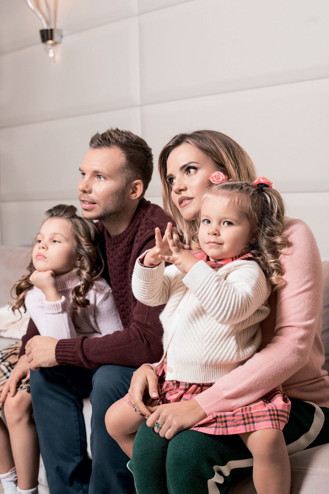 На Маргарите: джемпер Arc-en-ciel, юбка Burberry («кенгуру»); На Марианне: кардиган и платье — всё Burberry («кенгуру»)