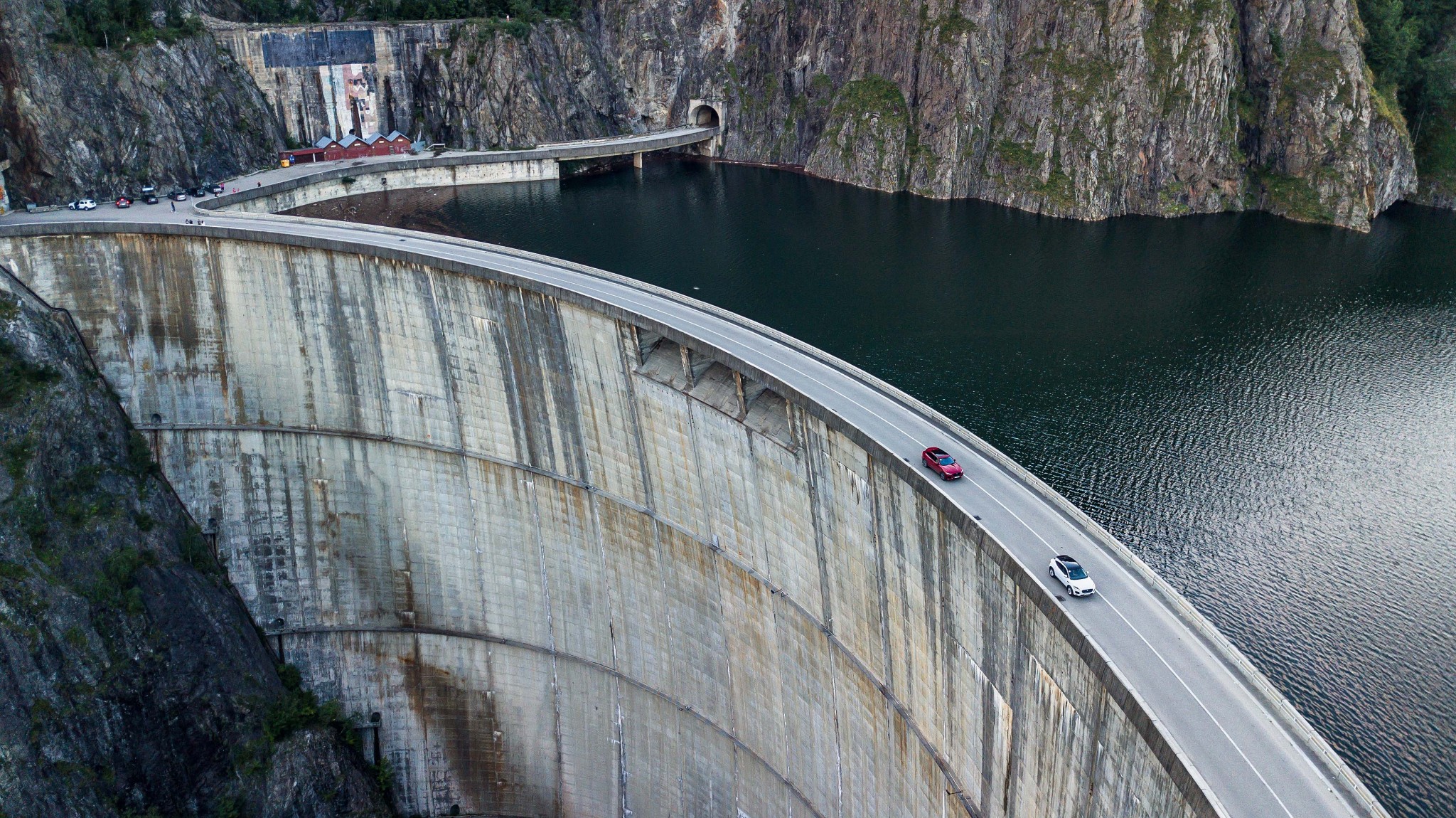 На пути из Бухареста к дамбе Видрару мы испробовали старший в линейке Jaguar большой кроссовер F-PACE на локальных шоссейках, бетонках и даже грунтовках, с выбоинами, крутыми подъемами и резкими поворотами петель серпантина. Машина спокойно преодолевала все препятствия, все-таки полный привод и мощный двигатель на таких дорогах очень выручают. Окрестные деревни оказались колоритными, на дорогах часто можно столкнуться с гужевыми повозками и стадами коров, с которыми не так-то просто разъехаться. С плотины Видрару открываются сумасшедшие виды на рукотворное озеро, все-таки высота плотины — целых 167 метров! Известно, что окружающие озеро скалы заминированы. В случае критичного подъема воды в озере, например из-за дождей, они будут взорваны, что не даст озеру залить окрестные поселки. Здесь влажно, стоят плотные леса и нередко можно встретить медведей. Румыния — самый крупный район нетронутых лесов в Европе. В местных лесах водятся разные виды диких животных, особенно велика популяция медведей. Нам не советовали вечером отходить далеко от отеля, но все-таки поутру одному из наших экипажей повезло увидеть этого хищника у дороги.