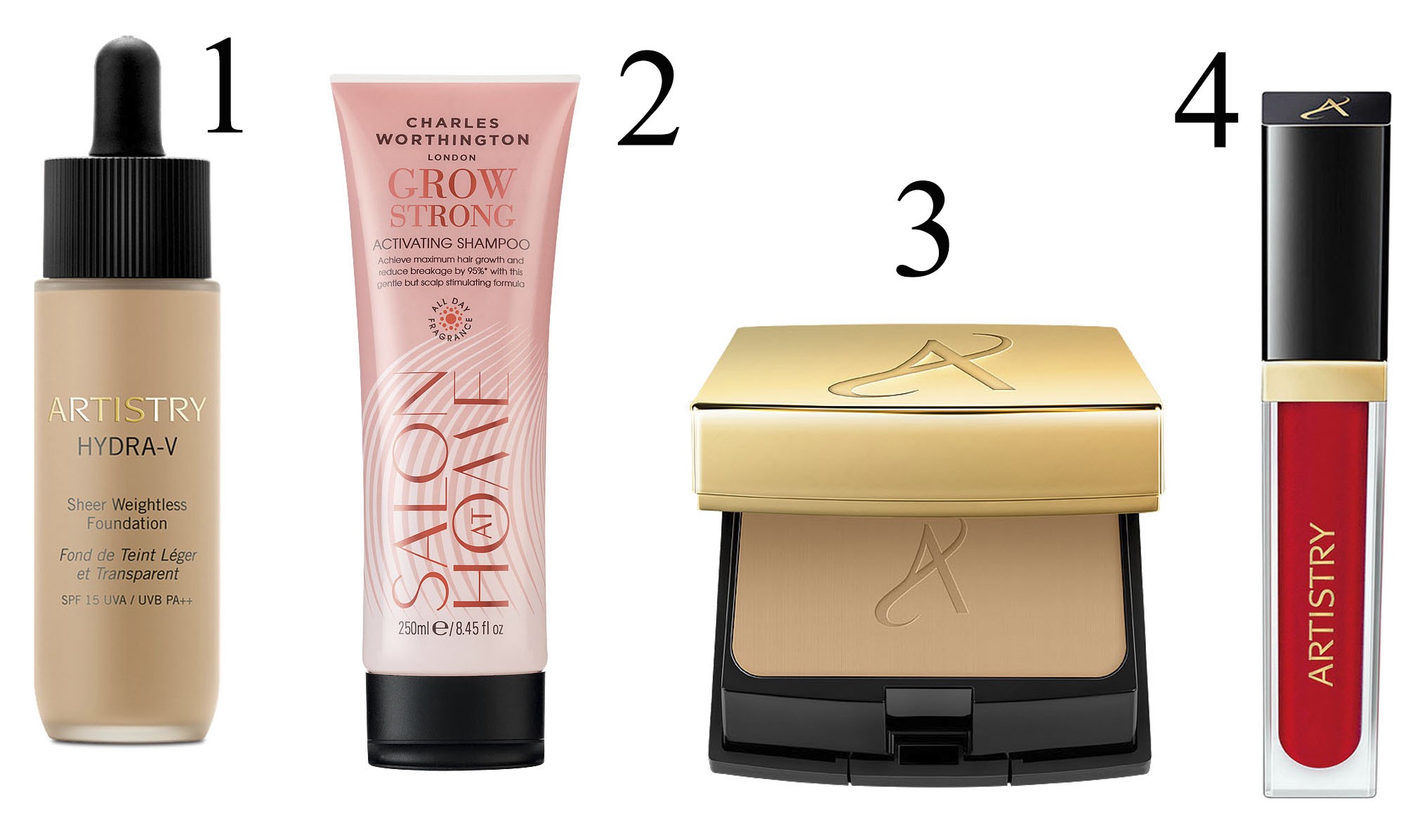 Чтобы придать волосам Александры гладкость и мягкость, Марина Сорокина, ведущий стилист марки Charles Worthington, использовала шампунь и кондиционер с протеинами. Локоны Александры она закрепила фиксирующим спреем для сияния. Образ с акцентом на губы главный визажист Artistry Анна Синица создала при помощи увлажняющей тональной основы, скульптурирующих румян, черной подводки и красного блеска для губ. В завершение Ольга закрепила макияж актрисы матирующей пудрой.