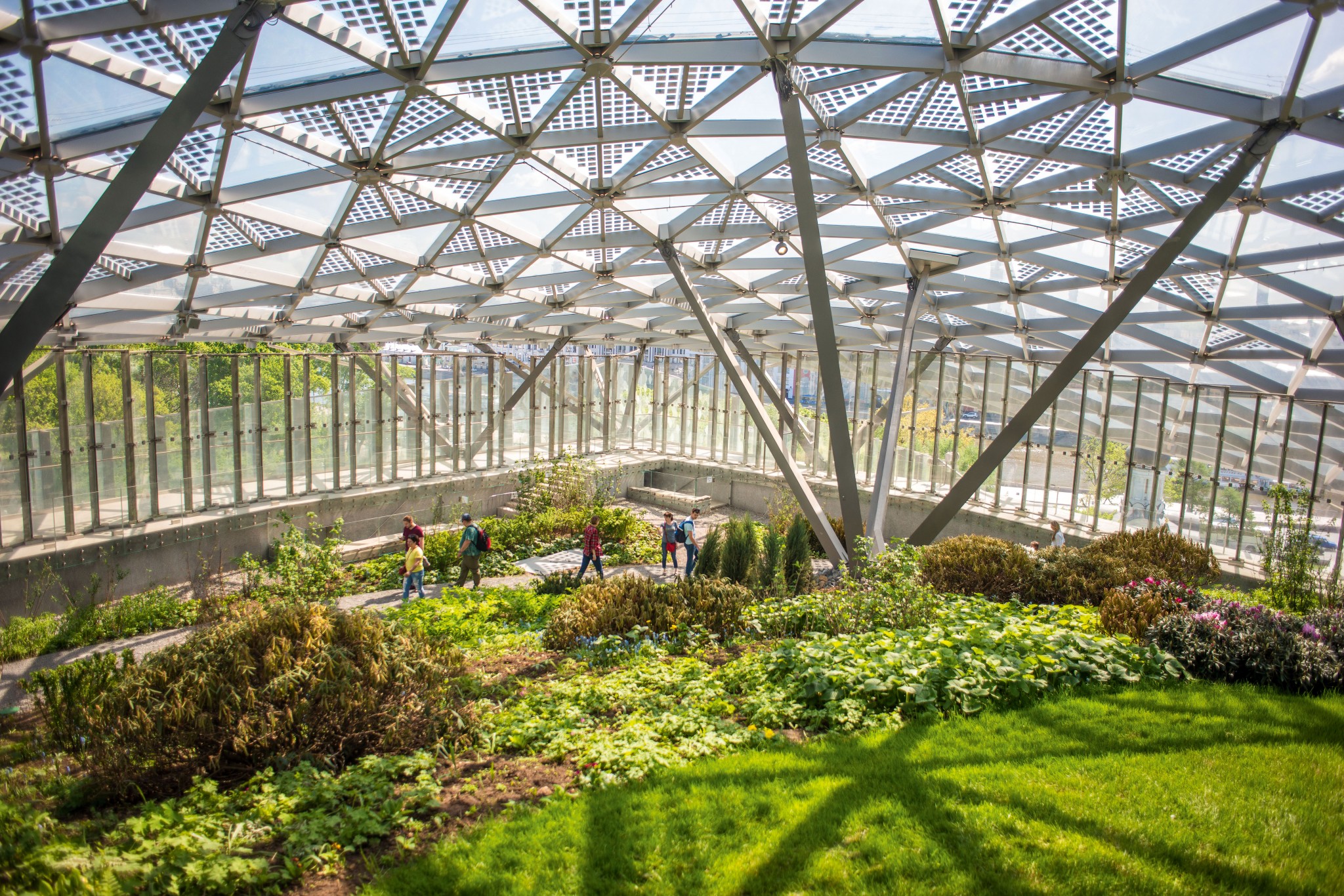 Да. Изначально в концепции было заложено воспроизведение четырех ландшафтных зон: лес, степь, луг и северный ландшафт. Плюс так называемый дополненный климат: около Большого амфитеатра под Стеклянной корой создан особый климат для теплолюбивых растений, отсылающий нас к южным регионам страны.