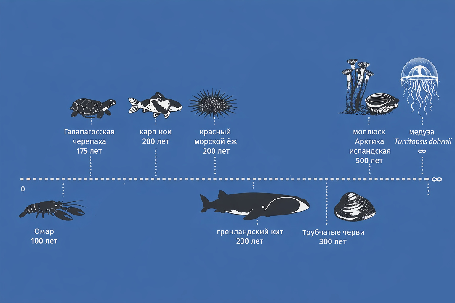 Человеку, чтобы дожить до 100 лет, нужно пройти целый путь: следить за здоровьем, питанием, сном и в целом бережно относиться к своему организму. Но в природе есть животные, для которых этот возраст — всего лишь подростковый период. Некоторые из них растут столетиями, а у других старение — процесс, который почти невозможно заметить